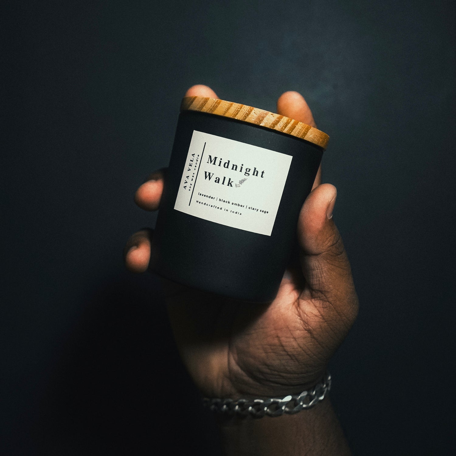 Midnight Walk (Lavender + Black Amber + Vanilla) Soy Wax Scented Candle 48 Hours Burn Time