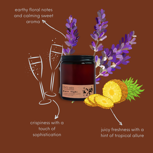 Date Night (Champagne + Lavender + Pineapple) Soy Wax Scented Candle 40Hrs Burn Time